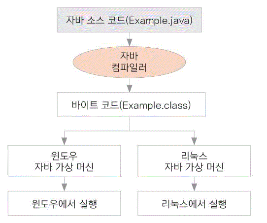 - 자바는 리눅스와 윈도우 등 다양한 환경에서 동일하게 작동.